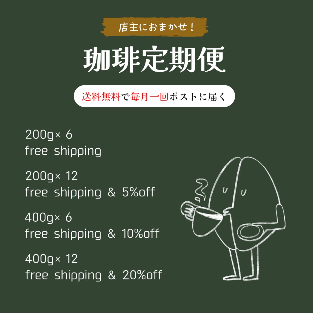 *最初のご注文時に一回目のお豆がすぐに欲しいお客様はお手数ですがメッセージを頂ければ当月分として随時発送します。翌月分から毎月15日前後の発送となります